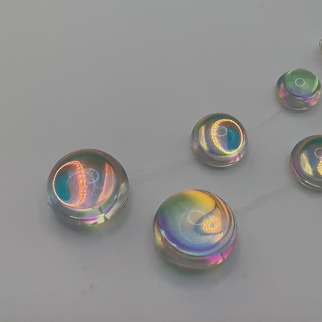 These statement drop earrings create a waterfall effect along your neck, with transparent orbs connected by delicate invisible wire. Each sphere captures light differently, creating shifting prismatic colors as you move.